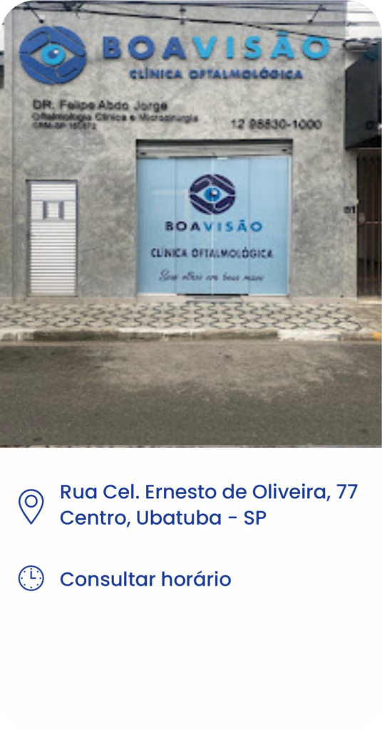A Boa Visão é referência em cuidados com a saúde ocular, unindo excelência médica, tecnologia atualizada e atendimento verdadeiramente humanizado. Nosso propósito é oferecer um cuidado completo da visão, com consultas especializadas, exames oftalmológicos precisos e acompanhamento contínuo para pacientes de todas as idades.